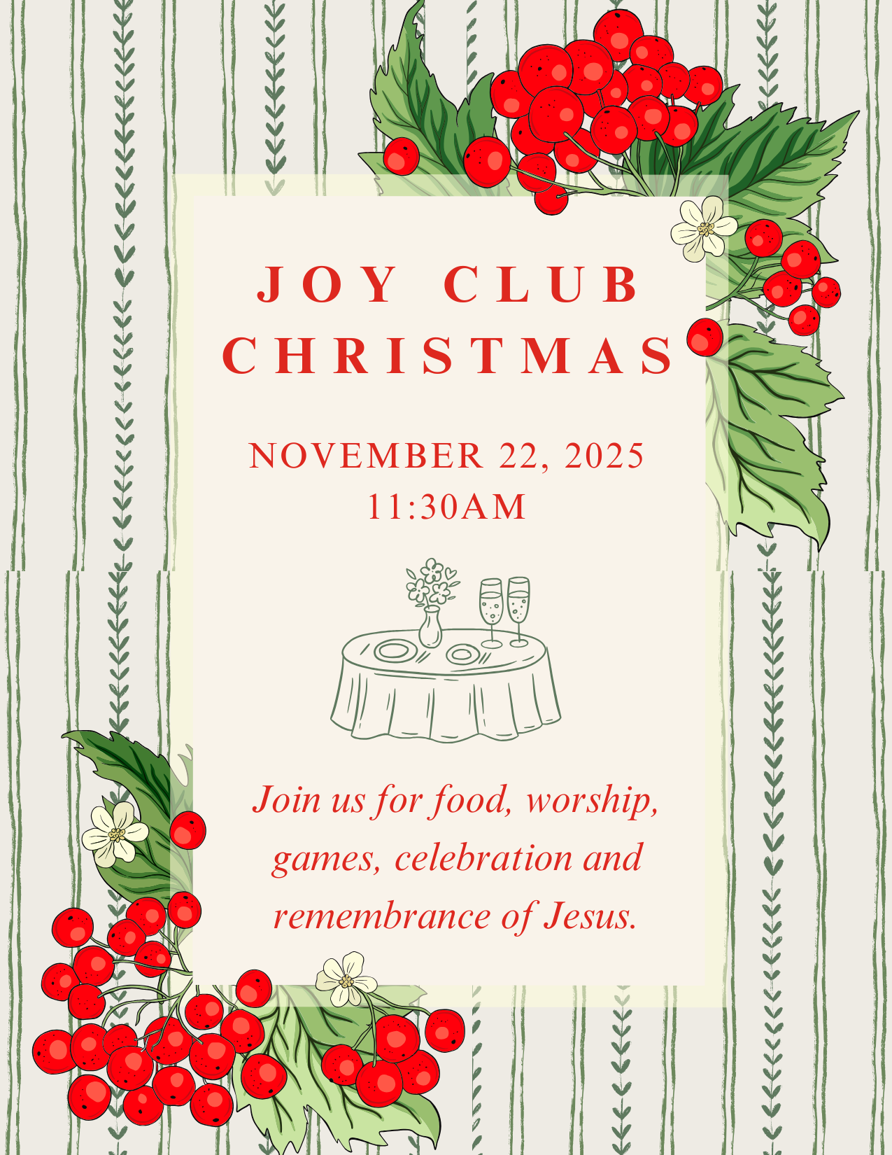 Join us as we grow together in God’s Word and encourage one another in faith and life.